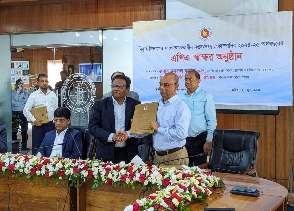 বিদ্যুৎ বিভাগের সাথে আওতাধীন দপ্তর/ সংস্থা/ কোম্পানির ২০২৪-২৫ অর্থবছরের এপিএ স্বাক্ষর অনুষ্ঠান